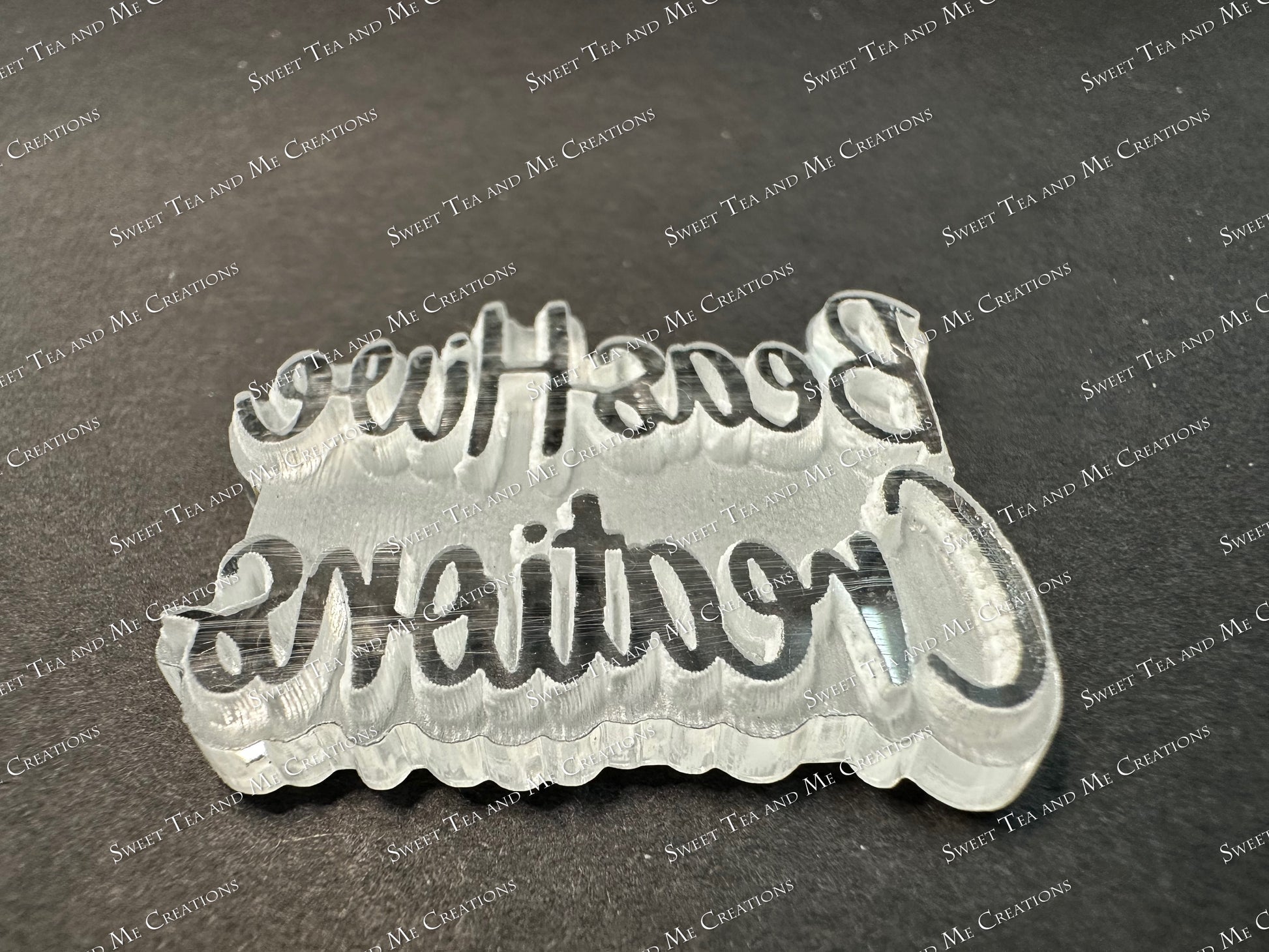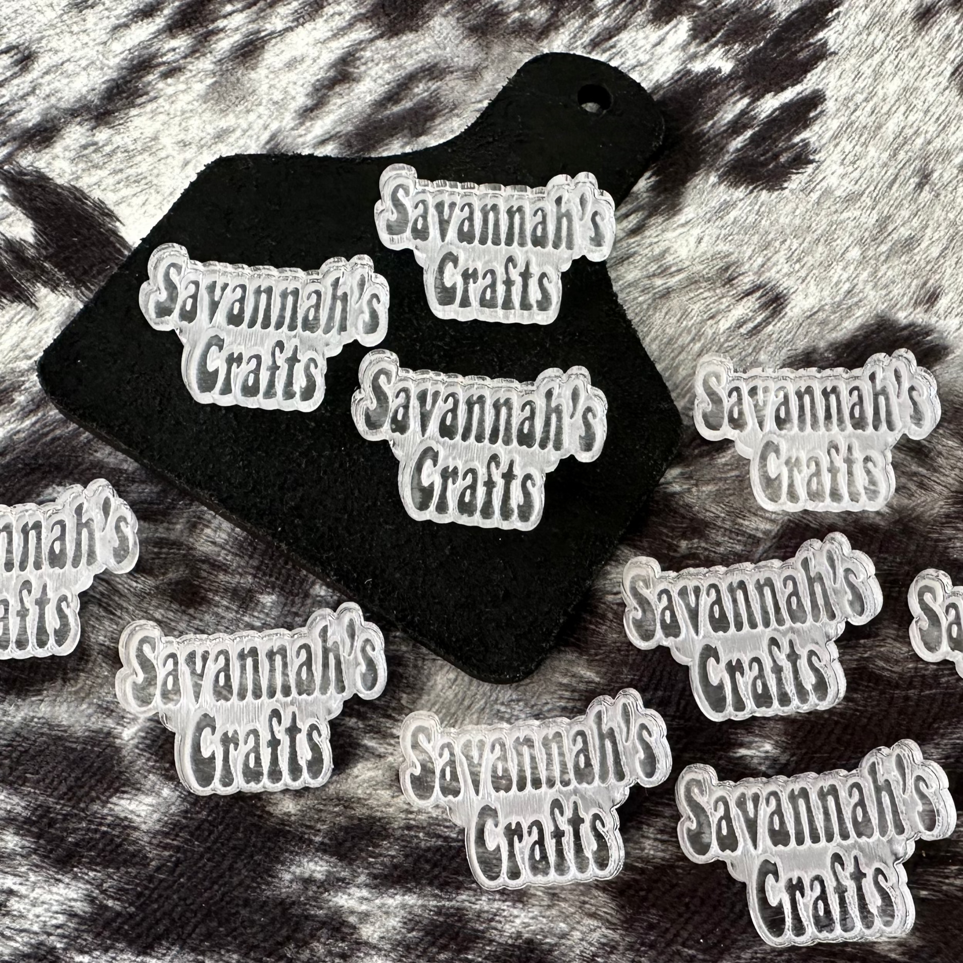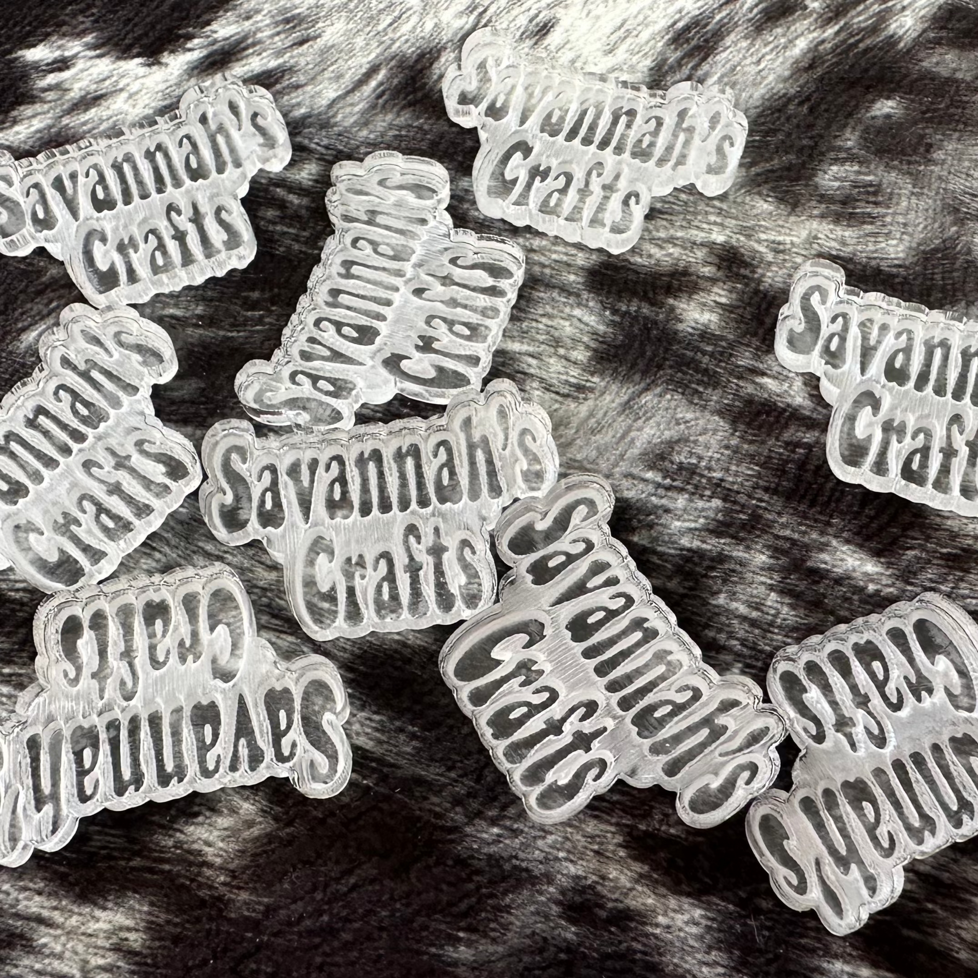 Note: AS OF 8/10/24 - ALL brands will be engraved/embossed directly onto the acrylic plate. This will not change the depth of the letters on the brand, it will only be different in appearance as opposed to the white letters you see in some examples. All brands will have the clear letter appearance. See photos for examples.